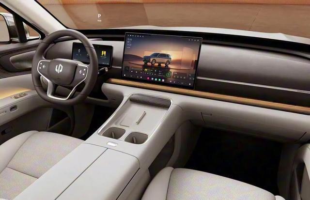 内饰方面,采用简洁的设计风格,平直的中控台线条,配备四辐式多功能方向盘,中控岛台处设计了双杯架以及下方置物槽、主。智能化方面,搭载配备60英寸AR-HUD+10.25 英寸液晶仪表+17.3英寸中控屏+6英寸后排多功能控制屏+21.4 英寸3K电动娱乐屏。