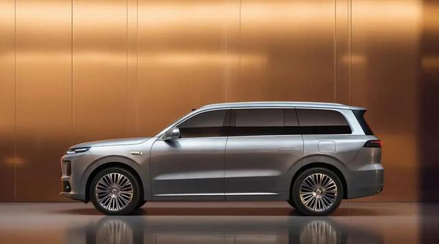 来到车身侧面,采用较为平直的侧面线条,车窗边框采用环抱样式的镀铬装饰条,纯平侧窗,提供车顶行李架、21英寸“向往之境”轮辋以及规格为265/45 R21的米其林轮胎。配备隐藏式车门把手。车身尺寸方面,新车的车长超5.2米,车宽近2米,轴距超过3.1米。