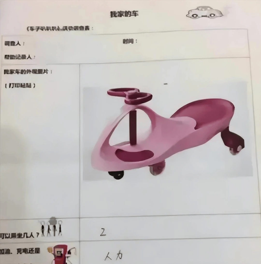 可当幼儿园拿亲子作业当幌子,实际上却是为了探查孩子们的家庭实力时,这种亲子作业也就变了味道,当作业内容涉及家庭住址、房屋性质、住房面积,甚至要求标注汽车品牌时,这样的作业早就成了负担和导火索。